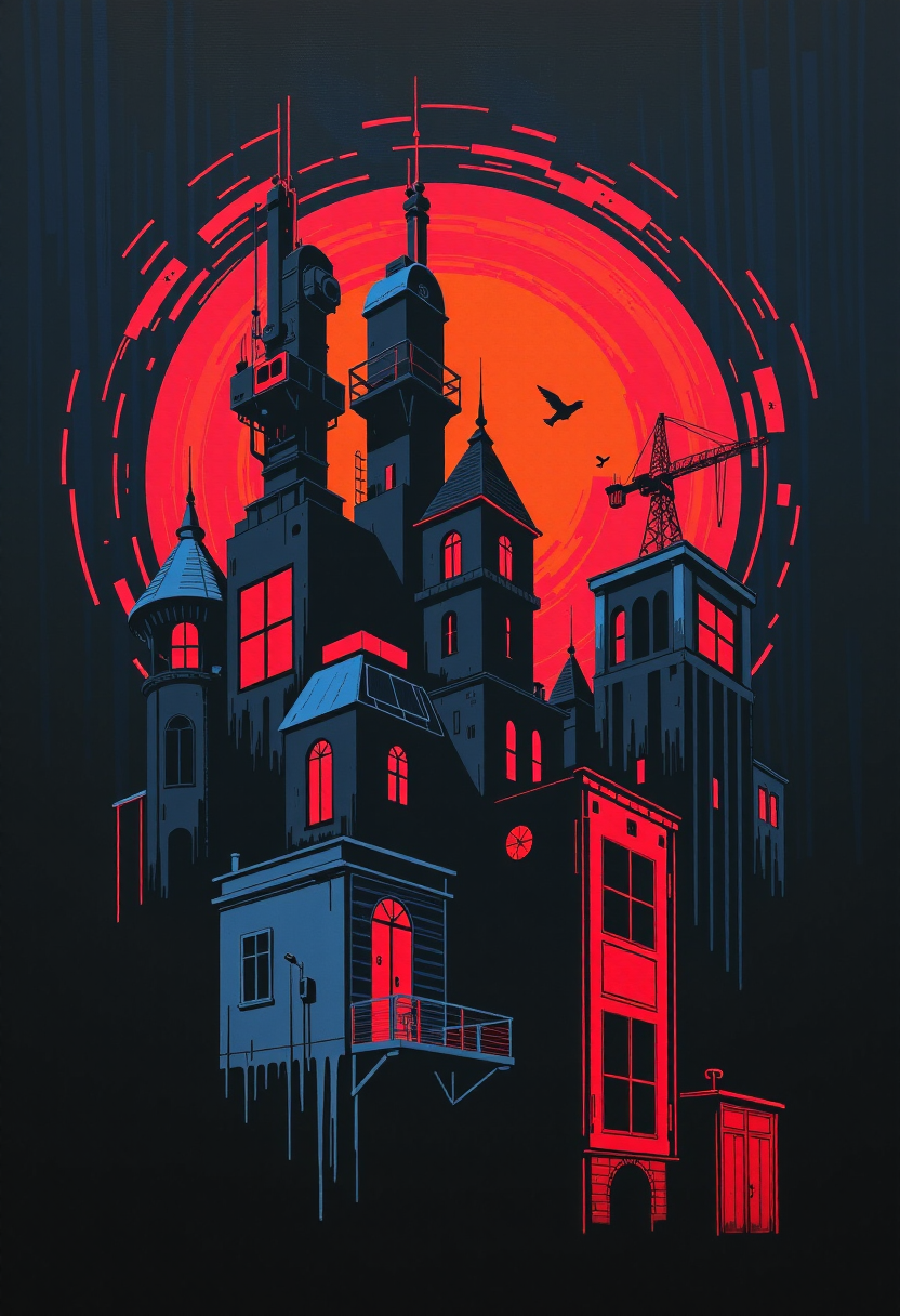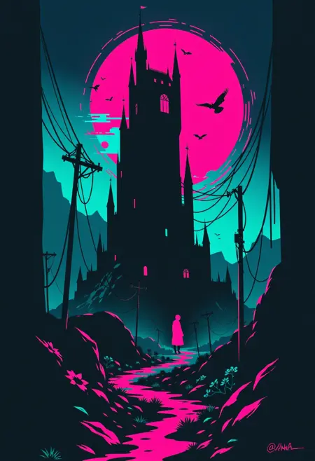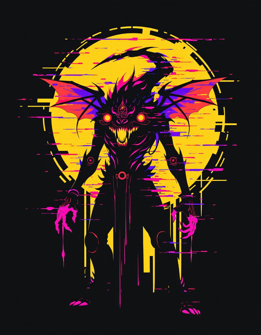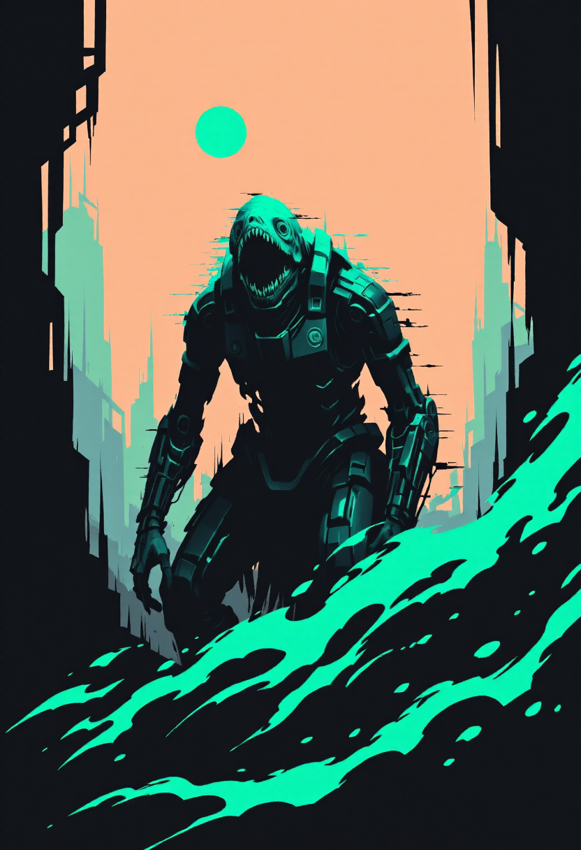 유용한 프롬프트: 실루엣, 글리치, 검은 배경, 전선, 케이블, 사이버펑크, 디스토피아