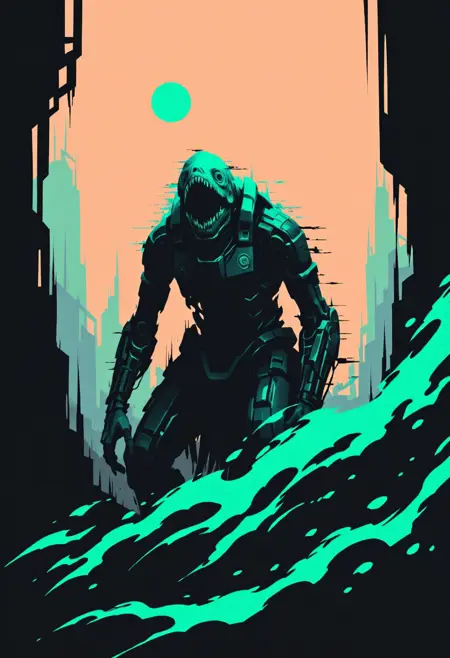 음영과 색상에 중점을 둔 다ystopian/cyberpunk 스타일의 이미지를 생성하기 위한 LoRA.