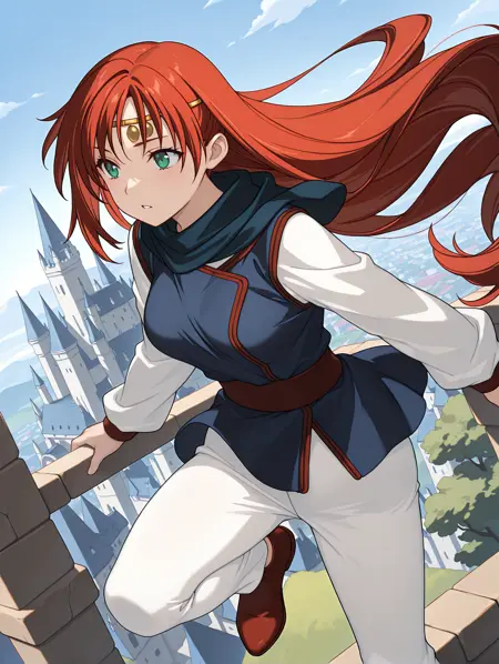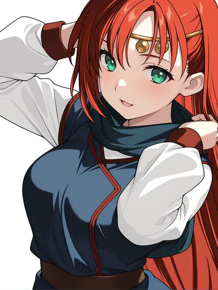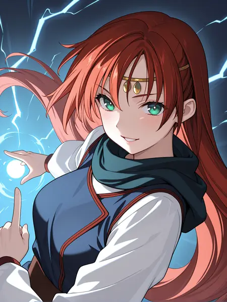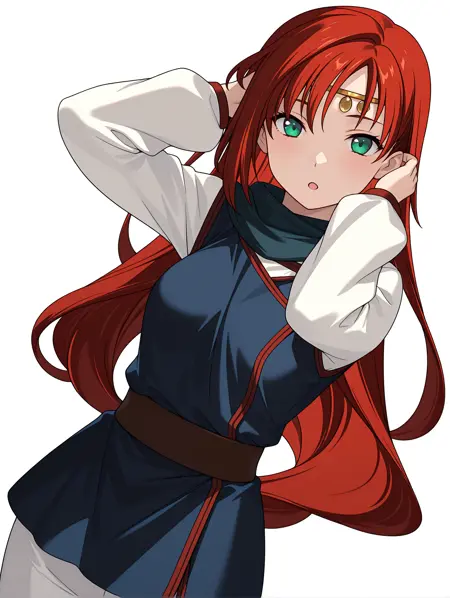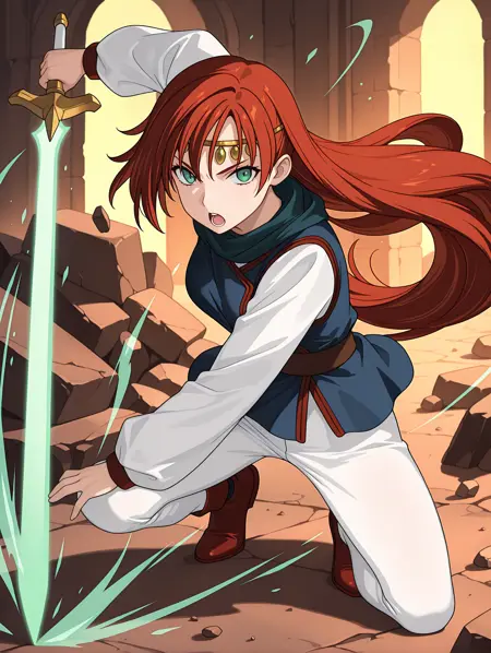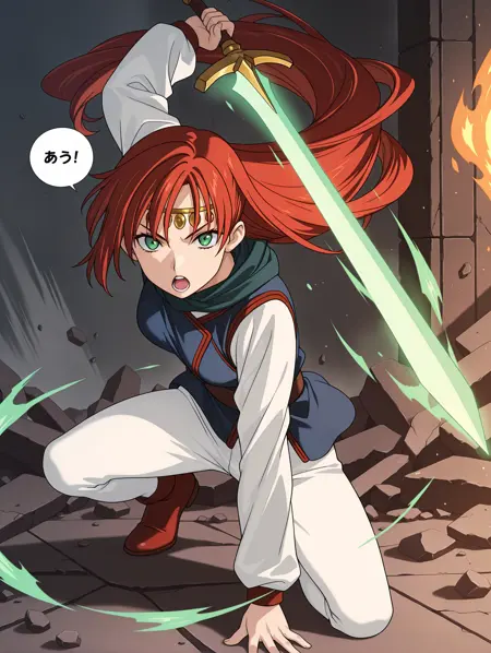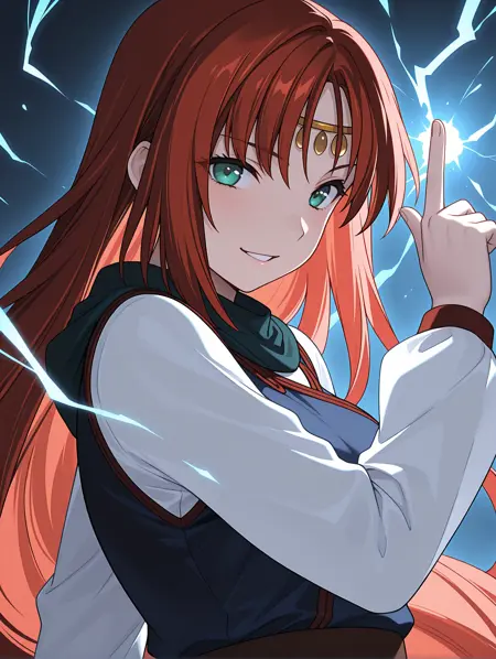 トリガーワード・elenoa,red hair,very long hair,green eyes,