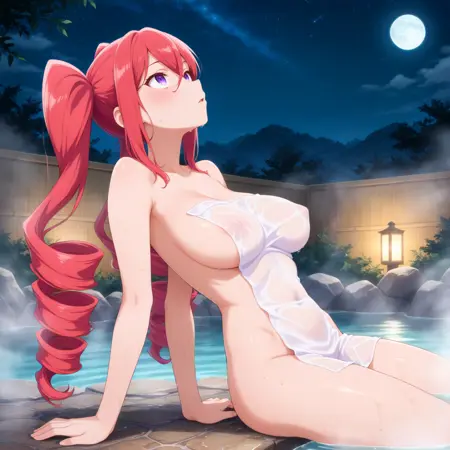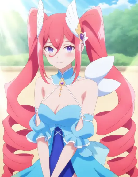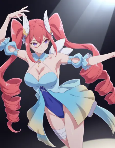 drtn, 1girl, solo, red hair, twin drills, purple eyes복장 1: