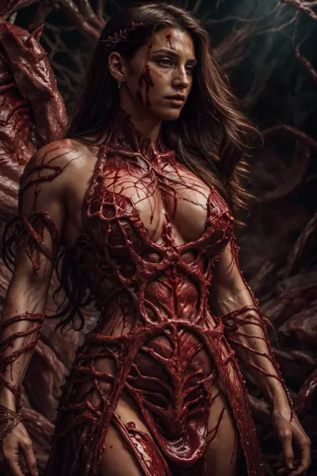 살과 유기물로 이루어진 갑옷과 의상들을 생성하는 의상 LORA입니다. 이는 두 가지에서 영감을 받았습니다. 하나는 유명한 레이디 가가의 고기 드레스이고, 다른 하나는 cult-classic 비디오 게임 《앨리스 마드리스 리턴즈》의 FleshMaiden 복장입니다. 솔직히 말해, 뼈가 튀어나오고 창자들이 늘어져 있는 더 혈액 폭력적인 디자인을 원했지만, 차단되거나 삭제되거나 하는 위험을 감수하고 싶지 않습니다..