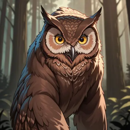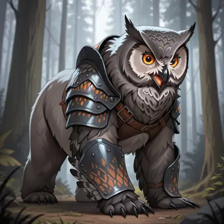 示例提示:owlbear, feral, owl's head, bear's body, green eyes, brown fur,