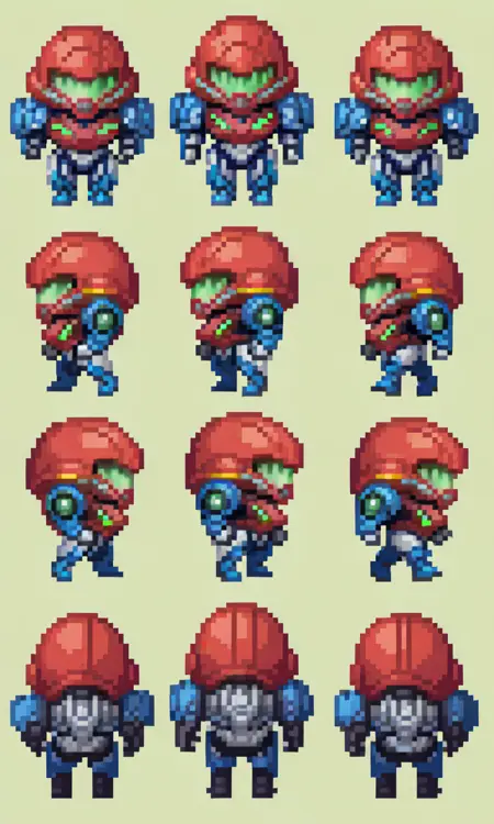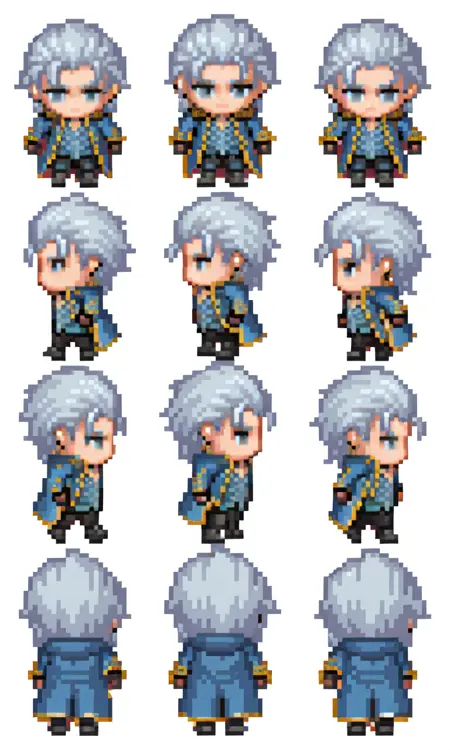 このLoRAは、RPG Makerで使用するスプライトシートを作成します。