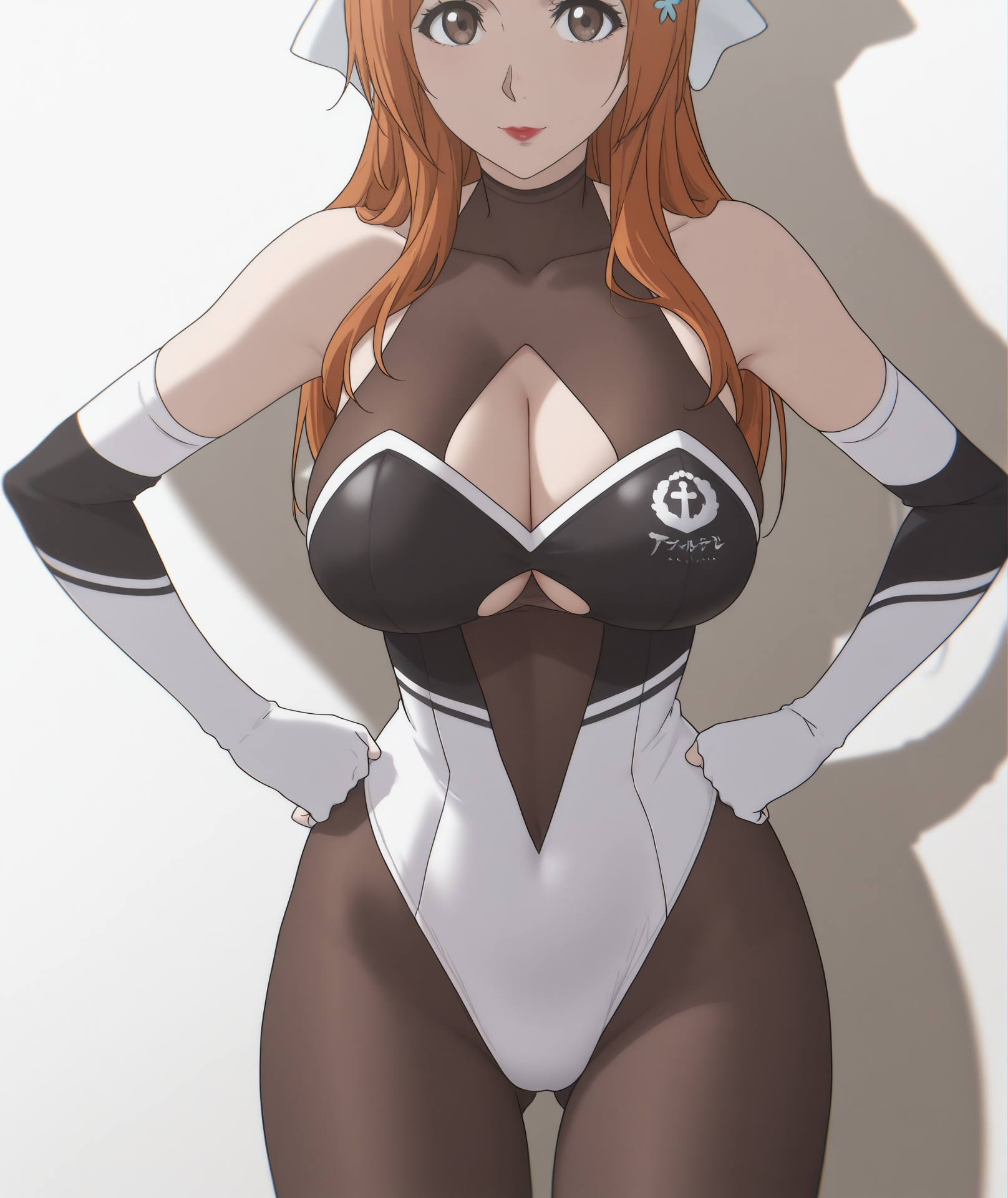 手袋、弓、胸元露出、裸の肩、鎖骨、タイツ、エルボーグローブ、白い手袋、指なし手袋、レオタード、黒タイツ、衣装カットアウト、胸元カットアウト、ボディーストッキング、ユニタード、ツートンレオタード、