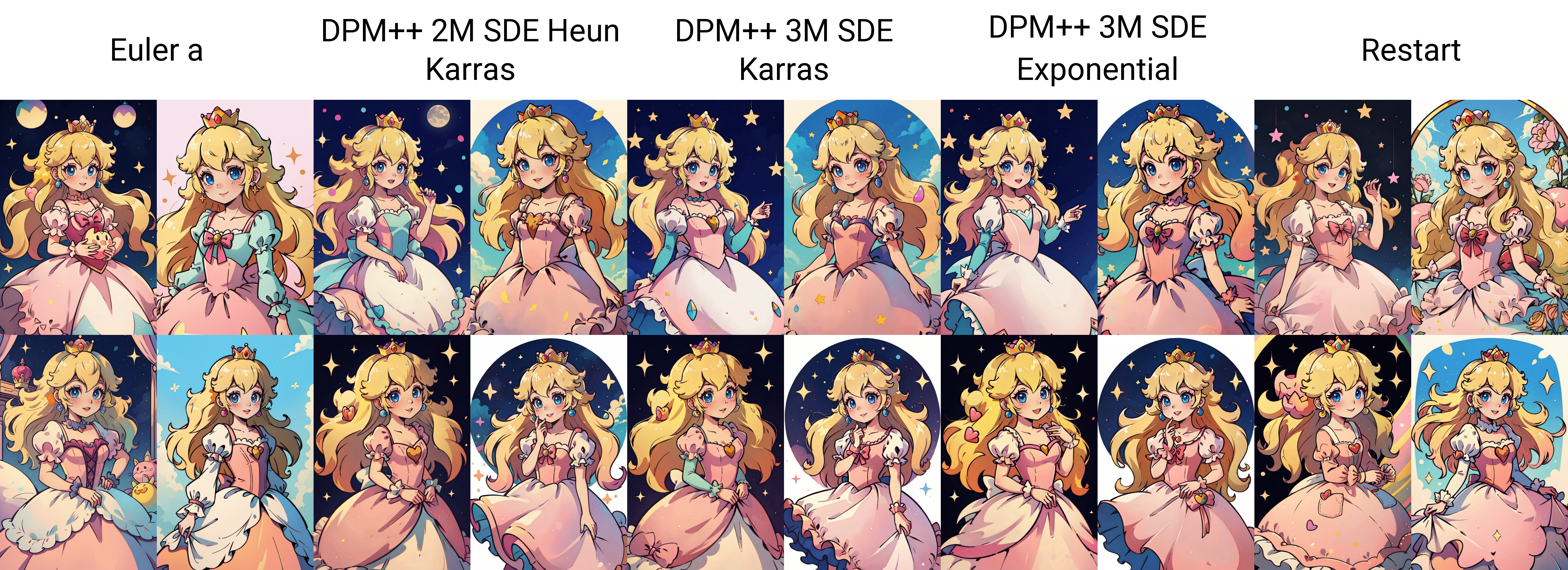 - Clip Skip、サンプリング方法、サンプリングステップ、CFGスケール:モデルと共に最後に掲載された画像をご参照ください。それらは、このモデルの生成にどのような影響を与えるかの範囲を示しています。範囲は広いので、自由に試してみてください!