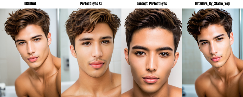 Here is a comparison of how some of the most used eye enhancing loras execute the same prompt: