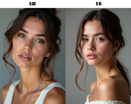 Flux has an extremely strong effect on face/body shape, so make sure to explore very small numbers, even as small as 0.025 (!), etc.