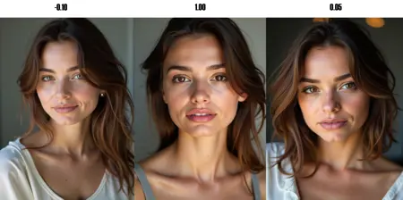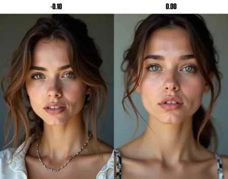 it has a special drawing/cartoon effect around -1.00 which needs the expression 'realistic eyes' in the prompt (othervise in general 'realistic eyes' is NOT needed)