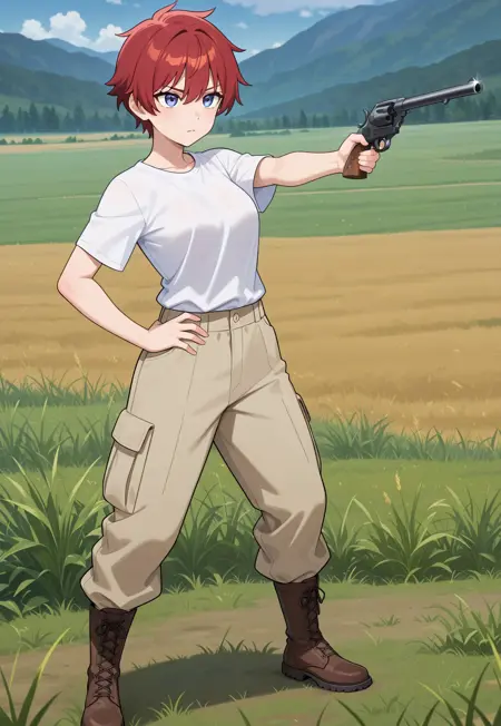 Illustrious模型通常对左轮手枪表现不佳(但对其他枪械尚可),我们来看看这次效果如何。本模型使用了6张插画、10张动画截图、11张实拍电影截图和3张仅包含SAA的相片(共30张)。所有实拍素材均为复制品,对训练有素的观察者而言,能发现若干细微的外部细节差异,但我并不期望模型能精确捕捉到螺丝位置等微小差异,也未对枪管长度进行控制。