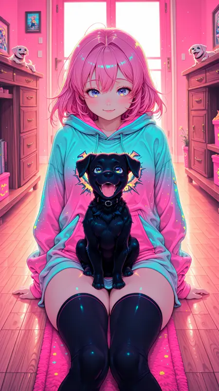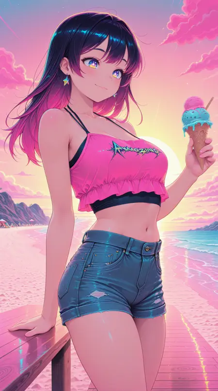 🌈 トリガー語: neon illustration in the style of pinkneonanime