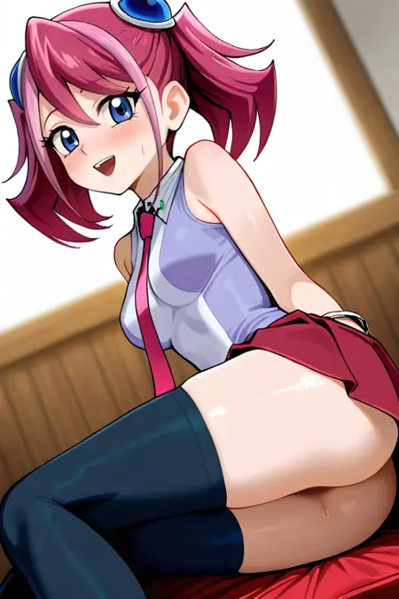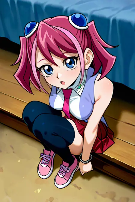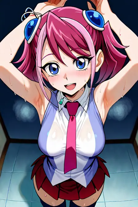 1girl, solo, hiiragi_yuzu_(yu-gi-oh!),短双马尾,粉发,双色发,发饰,蓝眼睛,