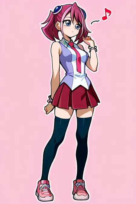 中等胸部,yuzudef,无袖,校服,领结,珠宝,手镯,百褶裙,红裙,绝对领域,黑色过膝袜,鞋子,粉红色鞋履,