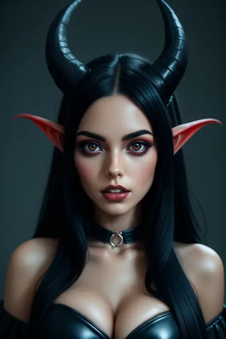 该模型可生成美丽而淫秽的魅魔形象,具有丰满胸部、细致眼睛、精致角、纹身身体,生成真实且照片级的性感老婆图像。