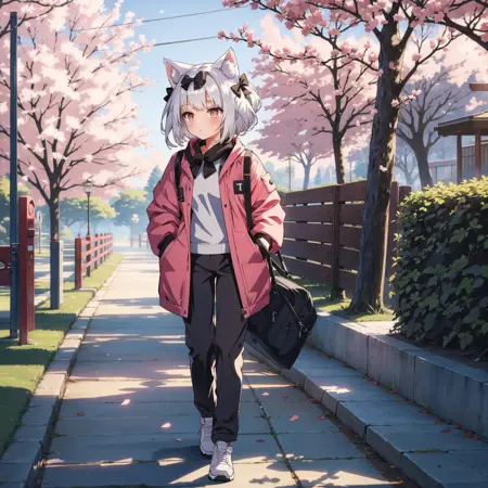 Winter's Snowy Wind:猫耳、红色蝴蝶结、白发