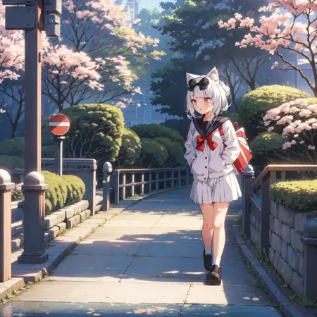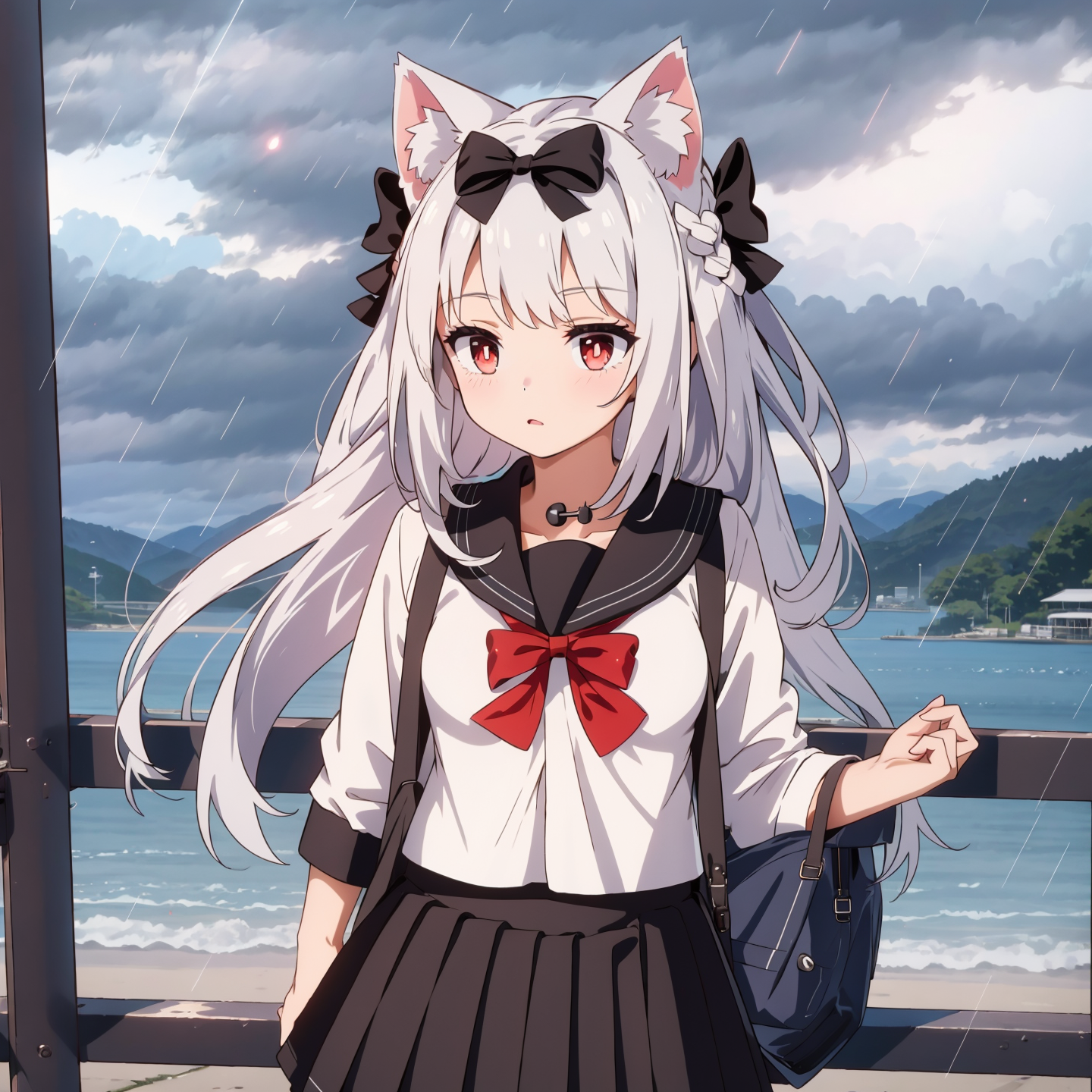 Yukikaze:猫耳、黑色蝴蝶结、白发