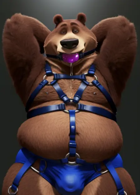 Reinforcement tags: bear, brown fur, obese, neck rolls, double chin, moobs, flabby, love handles, muffintop, fat rolls, squishy, wide hips, thick thighs, huge butt, big butt, plump