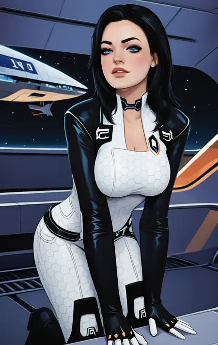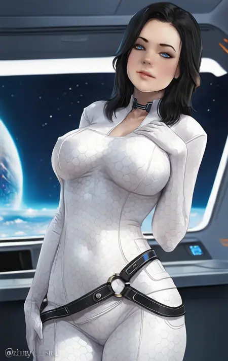 m1r4nd4, 1girl, solo, long hair, looking at viewer, black hair, gloves, choker, belt, fingerless gloves, lips, bodysuit, realistic