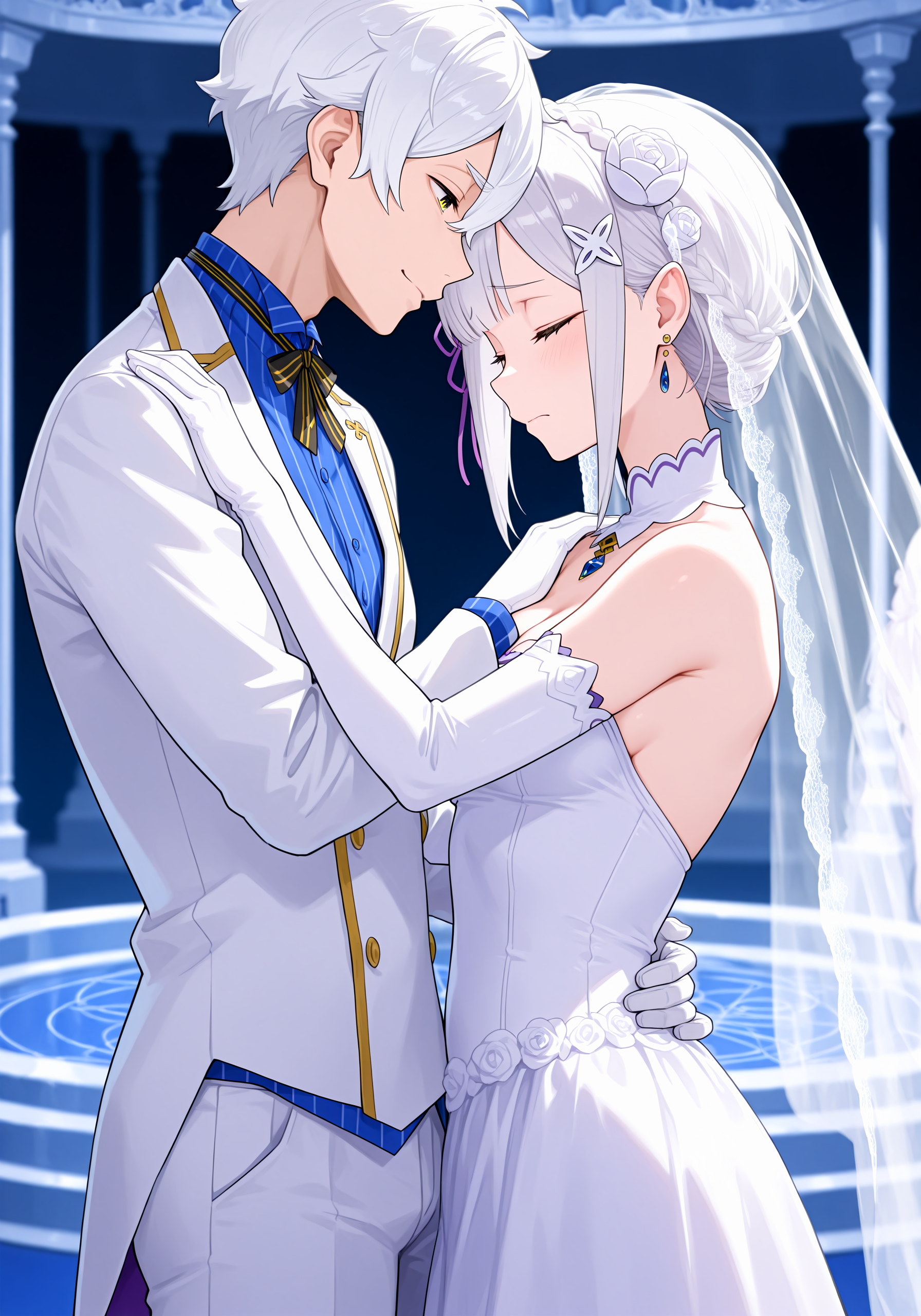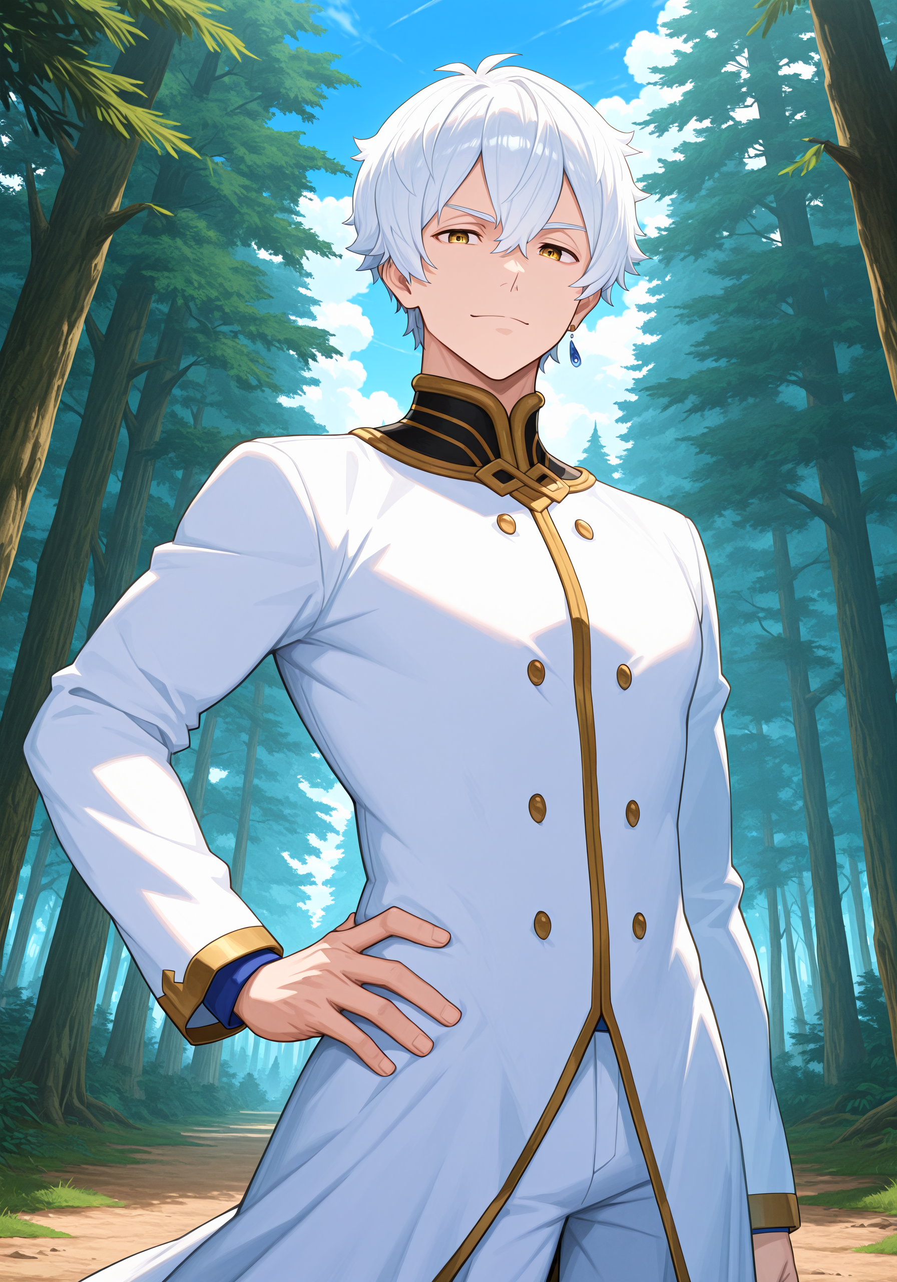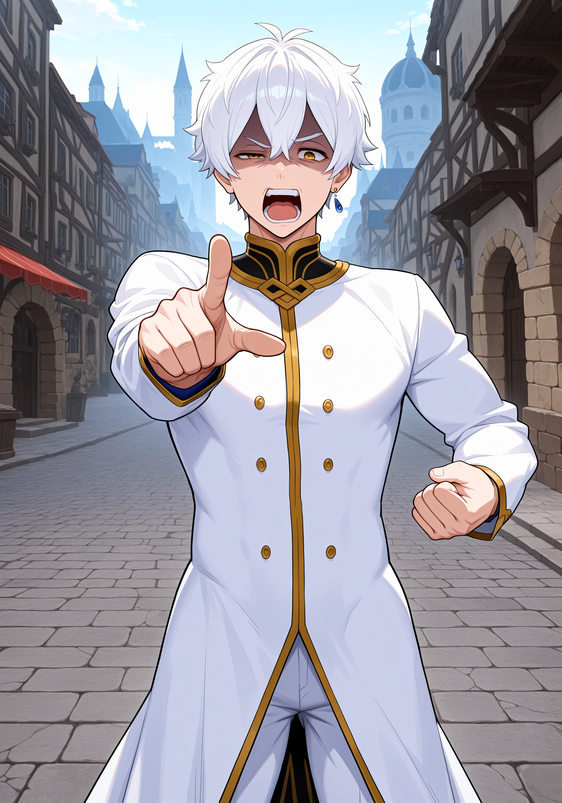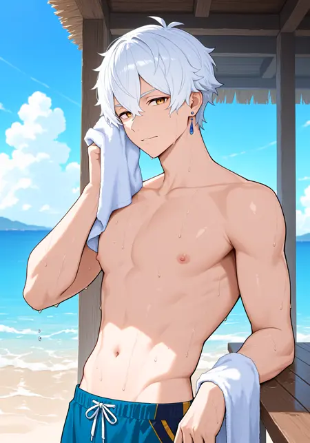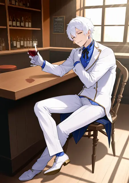 rgls, white hair, blue earring