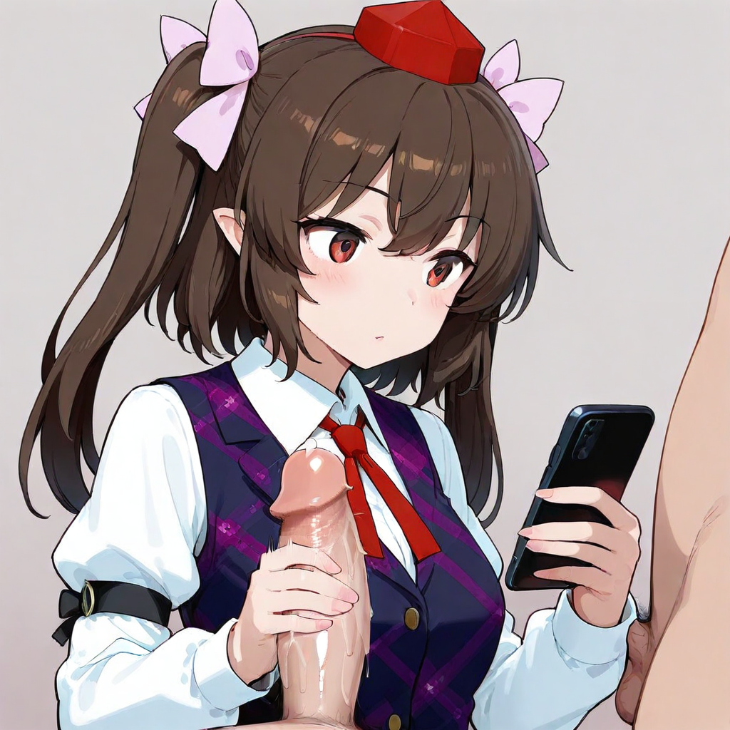futanari, handjob_with_both_hands, multiple_smartphones, floating_smartphone