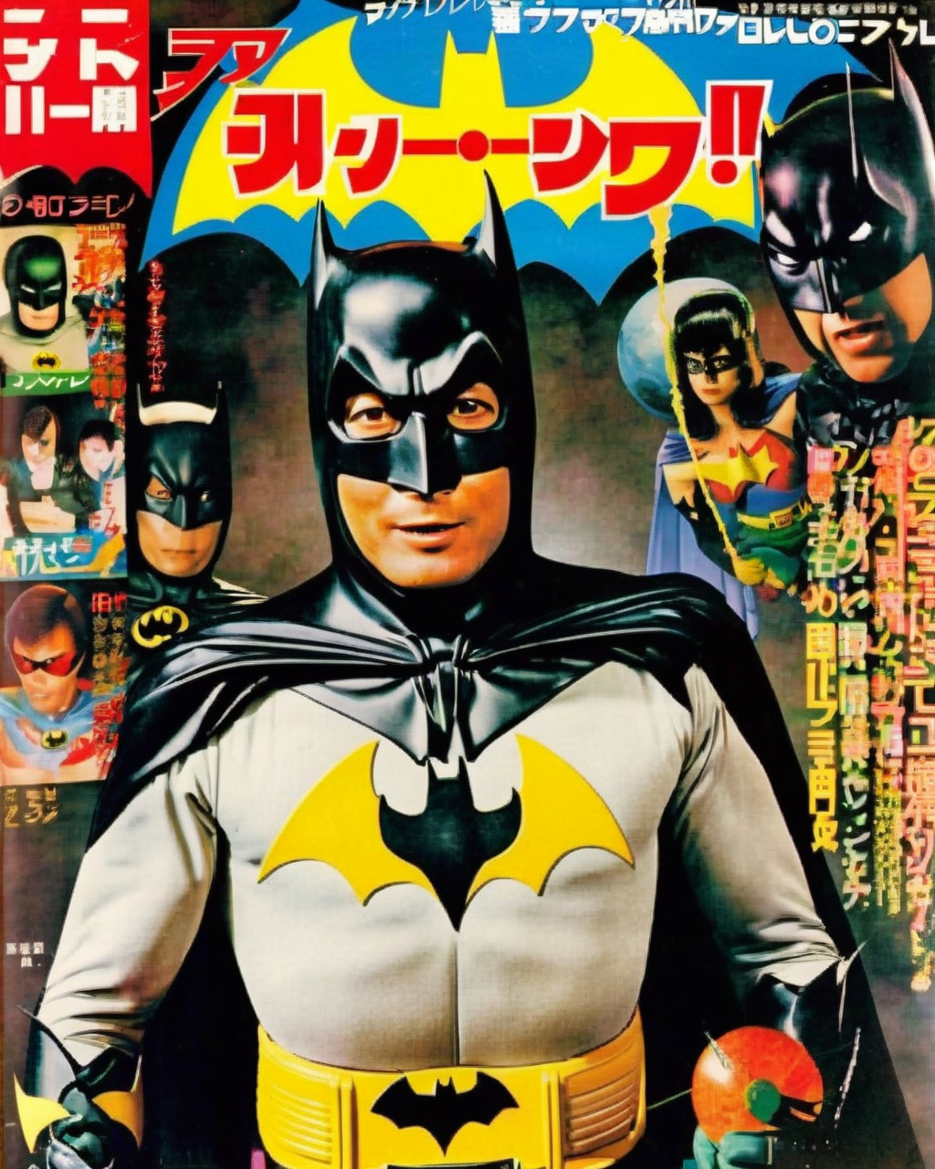 超级英雄盛宴:一张充满漫画风格的电视指南封面,显示奥特曼、假面骑士和哥斯拉在封面上激烈对决,展现日本超级英雄的持久魅力,动作十足:0.7,英雄主义:0.6,复古:0.4,标志性:0.5,动态:0.6。