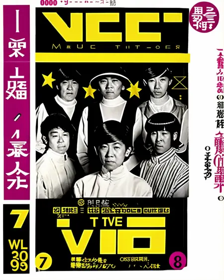 ミュージカル・マーベルス:イエローマジック·オーケストラや宇多田ヒカルなどの伝説的な音楽家を特集したTVガイドの表紙。音楽の交響曲と日本のポップカルチャーの祝祭を約束し、音楽のレジェンド:0.8、交響曲:0.7、ポップカルチャー:0.7、祝祭:0.6、音楽:0.6。