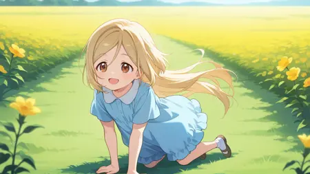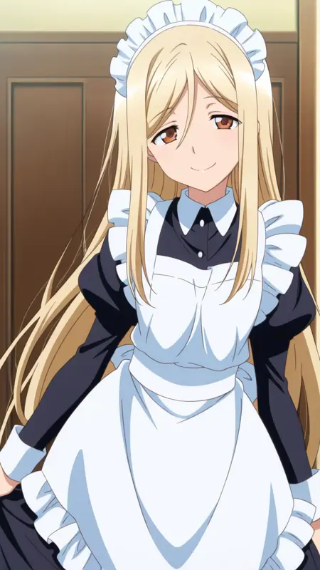 takano miyo, long hair, very long hair, blonde hair, parted bangs, brown eyes, hair between eyes,