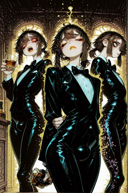 Femboy Esoteronauts 会将你的生成结果风格化为包含眼神异常且强烈、表情和姿态夸张的角色,并在大多数情况下带有明显的隆起。背景通常更繁杂,充满密集的精细细节,偶尔会出现超现实的场景。