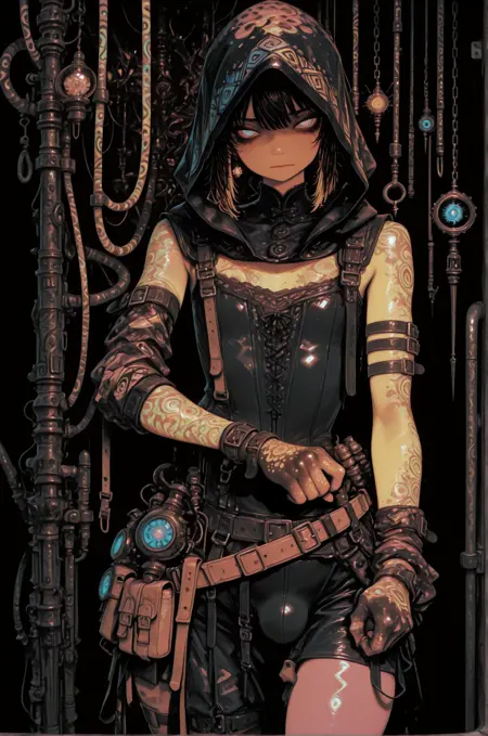 这个 LoRA 是我在尝试创造仿佛来自怪异世界的事物时逐渐形成的。一些直接的灵感来源包括桌面角色扮演游戏设定《Numenera》和《Gamma World》,以及动漫《Dorohedoro》和《Blood Blockade Battlefront》。最终的结果与上述任何作品都相去甚远,但正是这些灵感引导我走向了“异界探索者”——Esoteronauts。