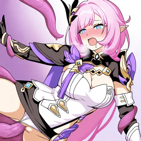 트리거: 1girl, solo, ElyPinkElf, elf, 파란 눈, 분홍 동공, 분홍 헤어, 긴 헤어, 낮은 토끼 꼬리, 뾰족한 귀
