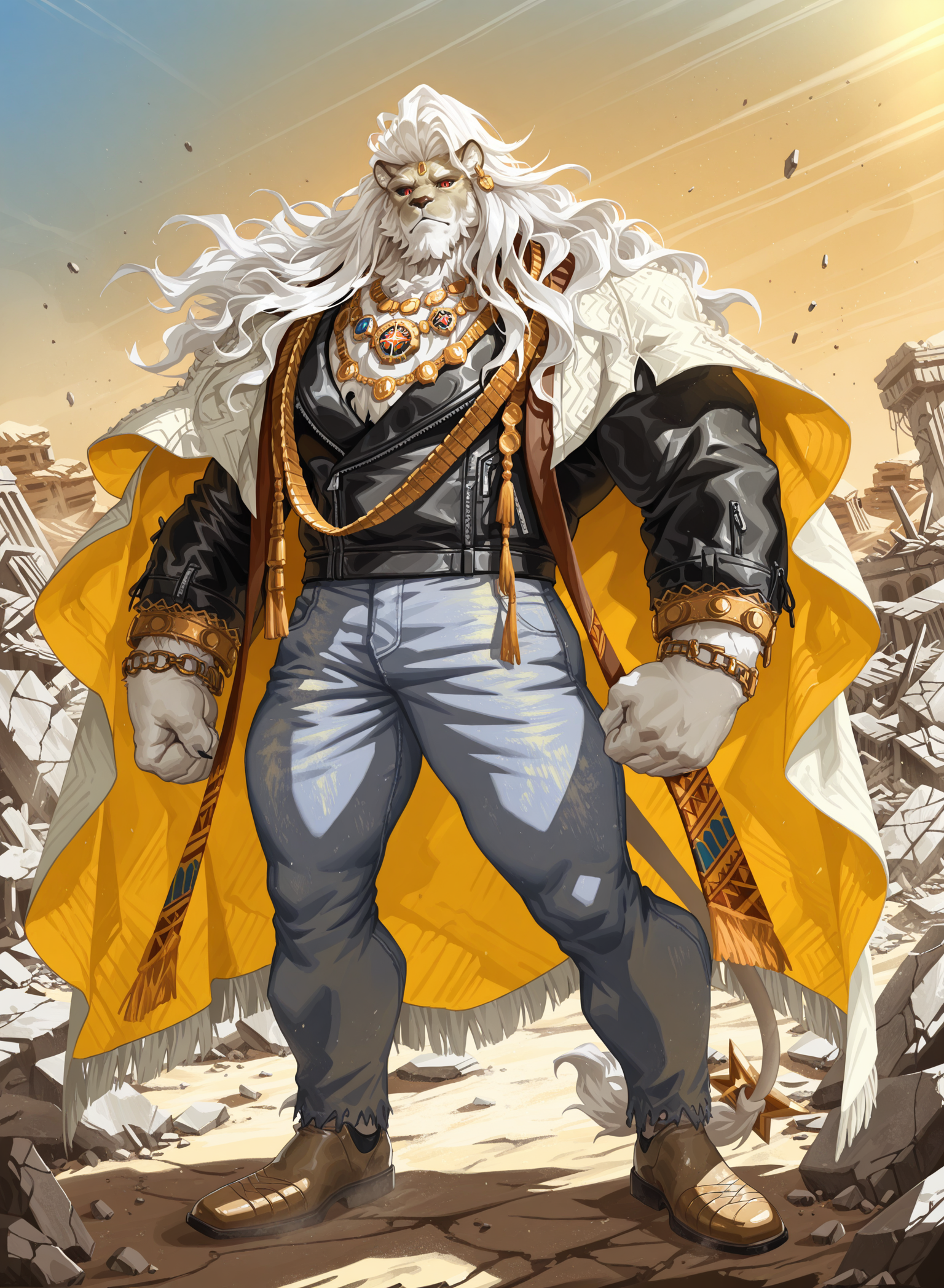 Trigger words: j@vid,lion,mature male,long hair,black_sclera,red eyes,facial hair,