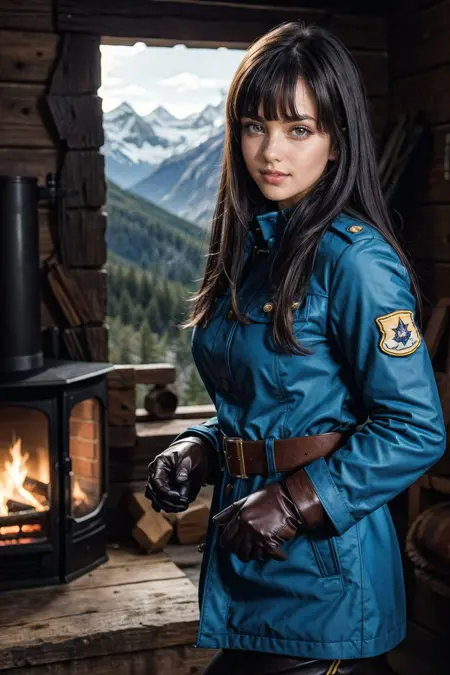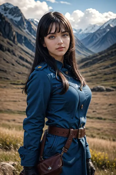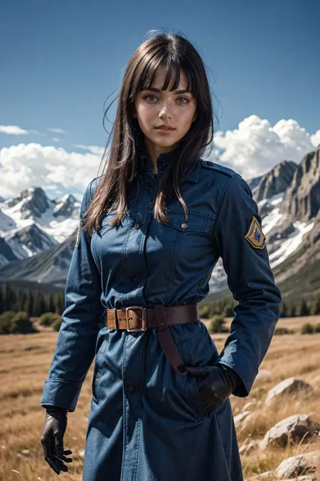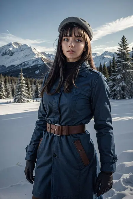 SD Positive prompt (MAI) : LORA, realistic, masterpiece, realistic, detailed, 8k, 1girl, beautiful photography of mai, black hair, long straight hair, bangs, military uniform, gloves, belt, coat, blunt bangs, hat, slim body, hourglass body shape,....