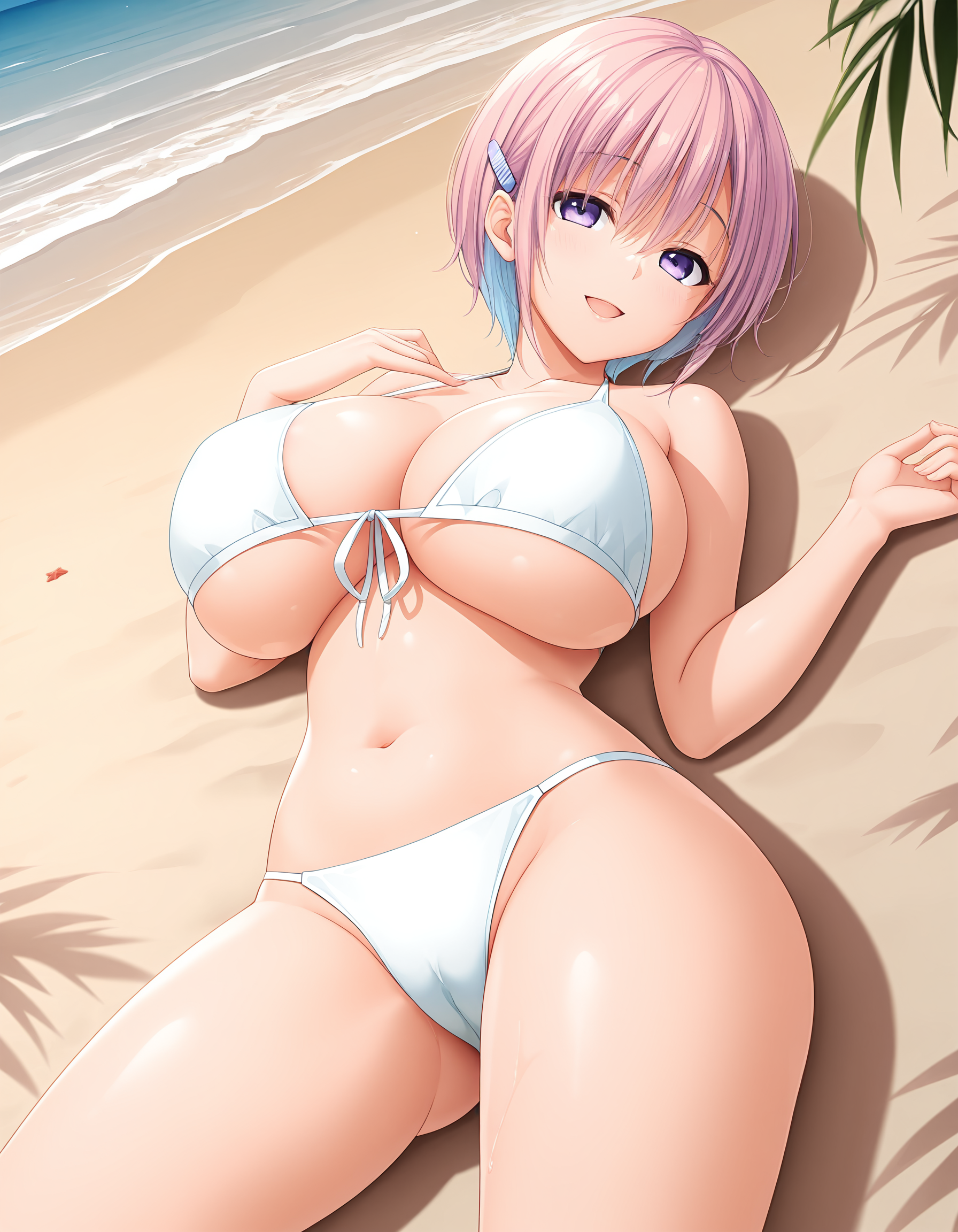 outfit04,比基尼,白色比基尼,吊带式比基尼上衣,前部系带比基尼上衣,丁字裤