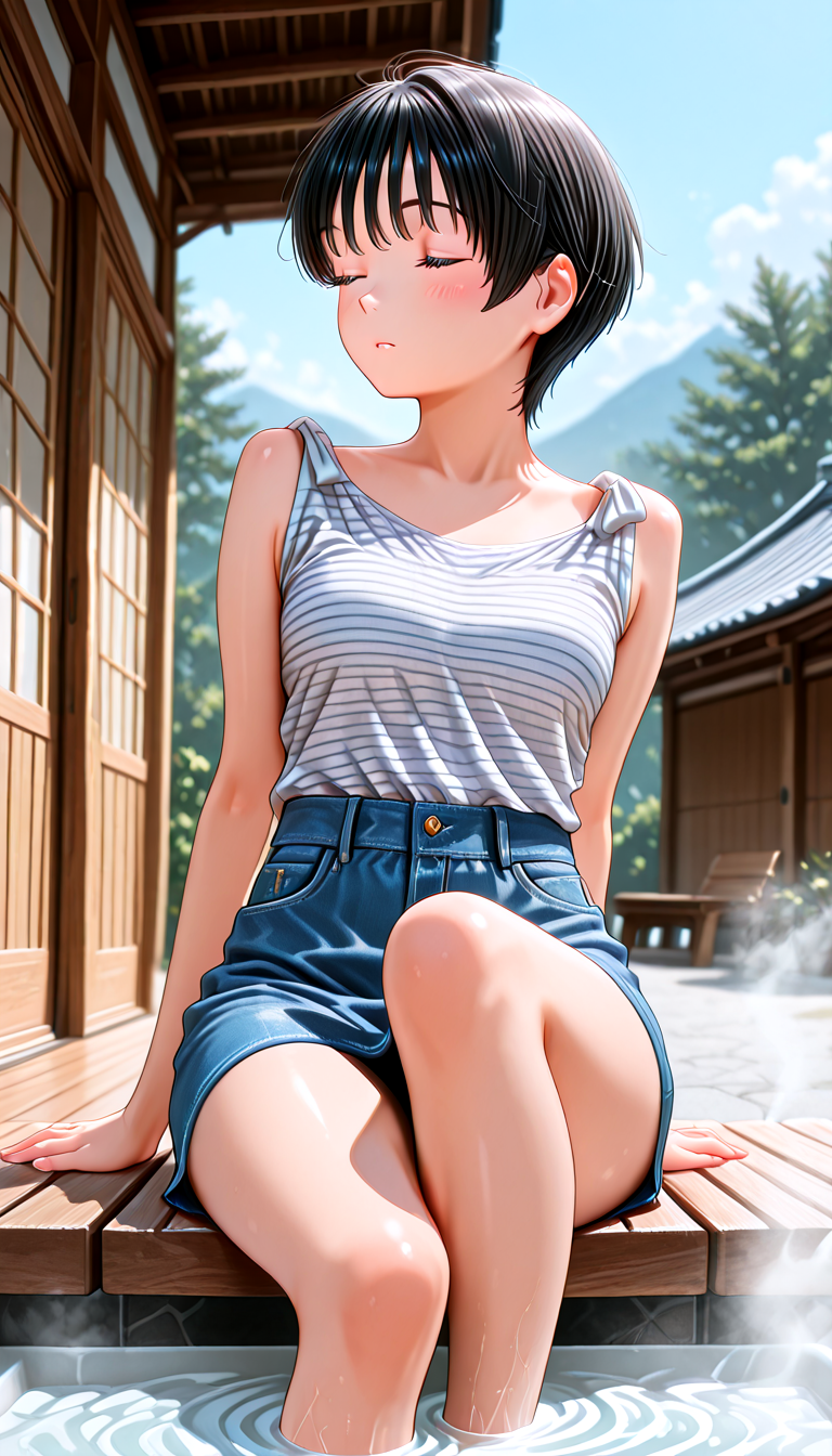 (학습 데이터의 문제로 반소매 등 의상에 ‘어깨 리본’이 자주 나타납니다. 이를 방지하기 위해)
