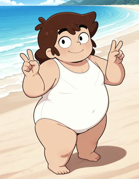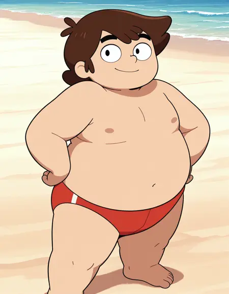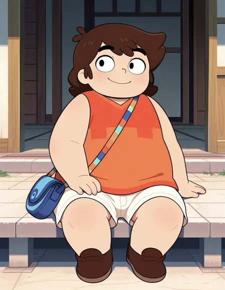 black eyes, brown hair, black eyebrows, fat, plump, obese, 1boy, male, young