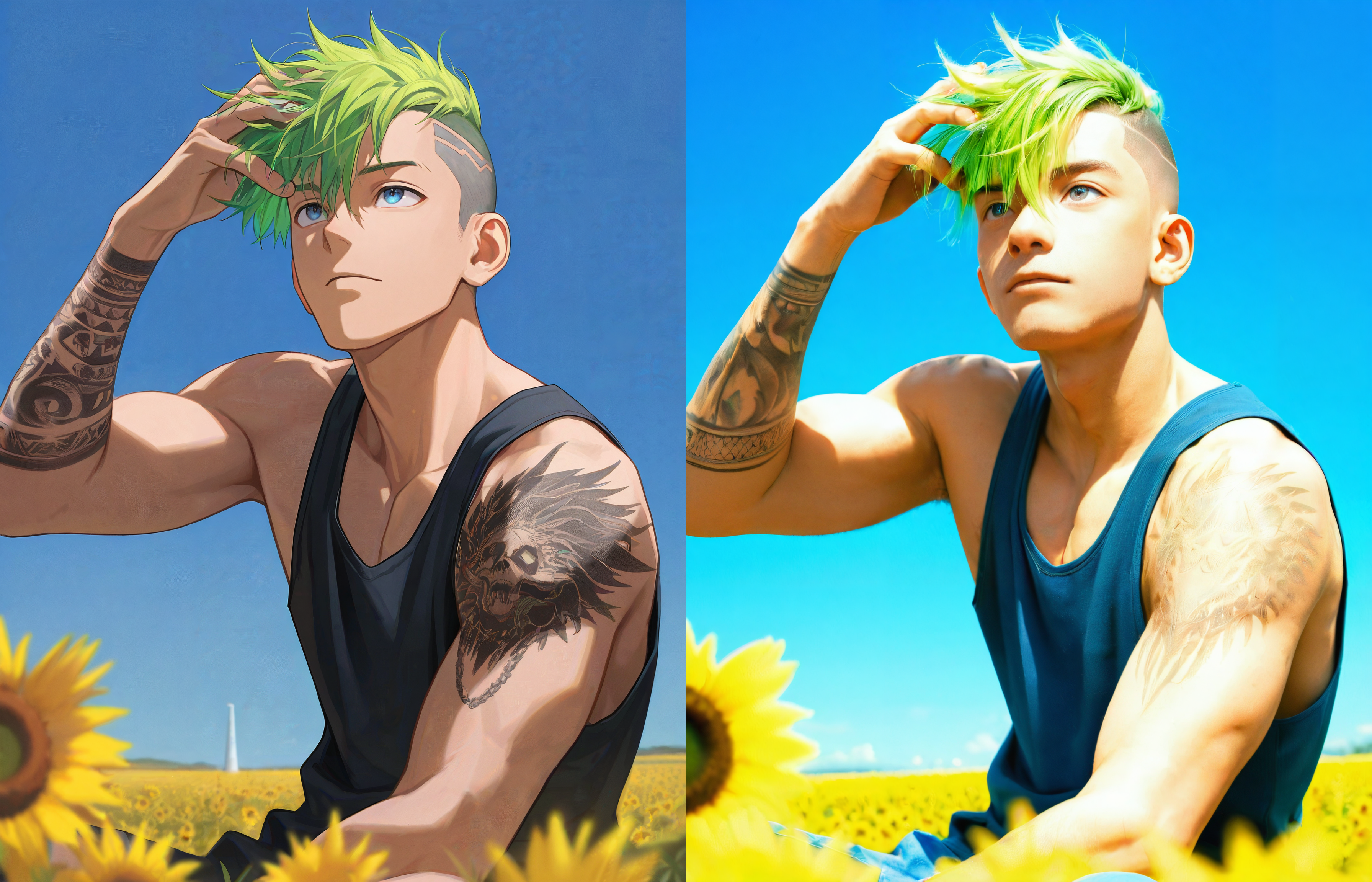 希望你们喜欢这个作品。目前,我正在开发一个支持图像转图像(IMG2IMG)的版本,能同时输出写实版和2D版,但这个版本可能会更重一些,因为它包含了额外的ControlNet。请关注更新吧:D