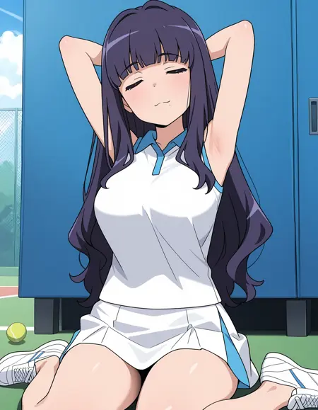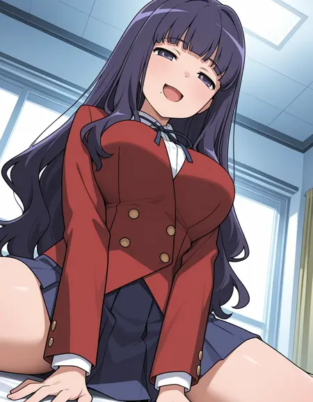 toradora!,kashii nanako,purple hair,long hair,blunt bangs,sidelocks,purple eyes,mole under mouth,large breasts