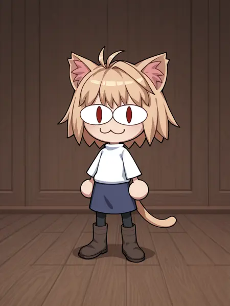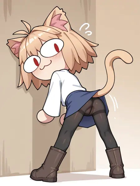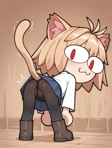 tail, cat ears, cat tail, cat girl, pantyhose, skirt, brown boots, chibi
