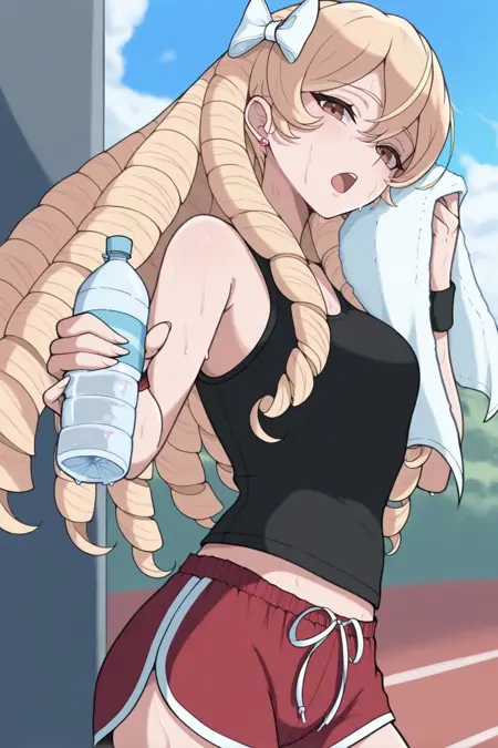触发词为 "mribl",且必须包含 "金发,卷发,长发,棕眼"。