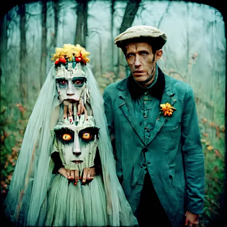 不気味なスタイル、以前のMidjourneyバージョンのように、目や肌などが不自然に