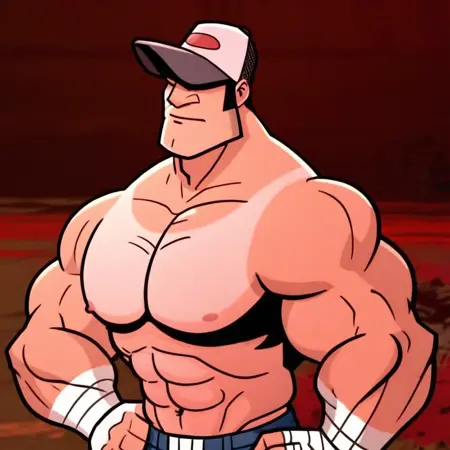 Model inspired by a Caucasian man with tattoos and a cap covering his eyes, giving him a mysterious appearance. Based on the art style of an older game (Shank).