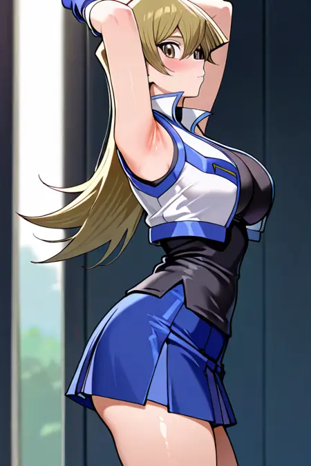 1girl, solo, tenjouin_asuka_(yu-gi-oh!_arc-v), 長い髪, 金色の髪, 茶色の目,