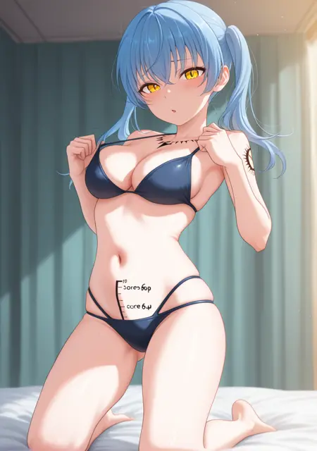 Prompts: dick-o-meter, depth meter, measurement, on stomach, on torso, markings, body markings,