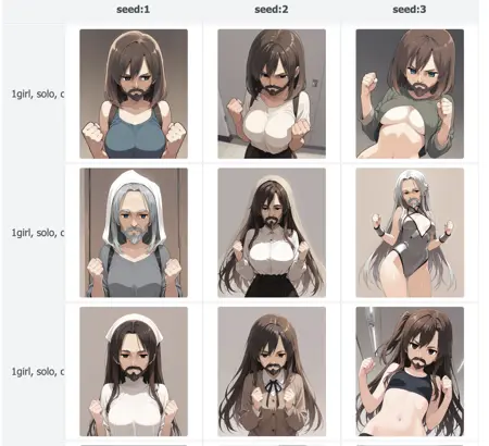 ひげは男性の強力な特徴であるため、プロンプトを使って「1girl, 1boy」の画像で、女の子にひげがあり、男の子にはひげがないように作るのは困難です。そこでこのLoRaは、そのような制御を容易にすることが可能かどうかを試すことを目的としています。