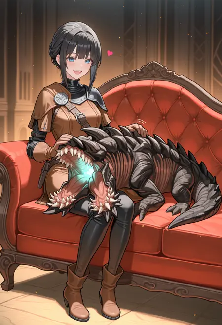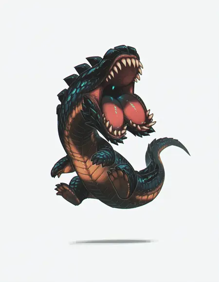辅助/次要触发词和标签:张开的嘴、尾巴、鳞片、尖牙、发光