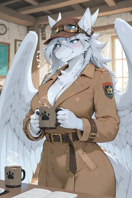 1girl, Excalibur, anthro, furry, furred dragon, blue eyes, white fur, grey wings, dragon wings, thick thighs, large breasts, wide hips, hourglass body