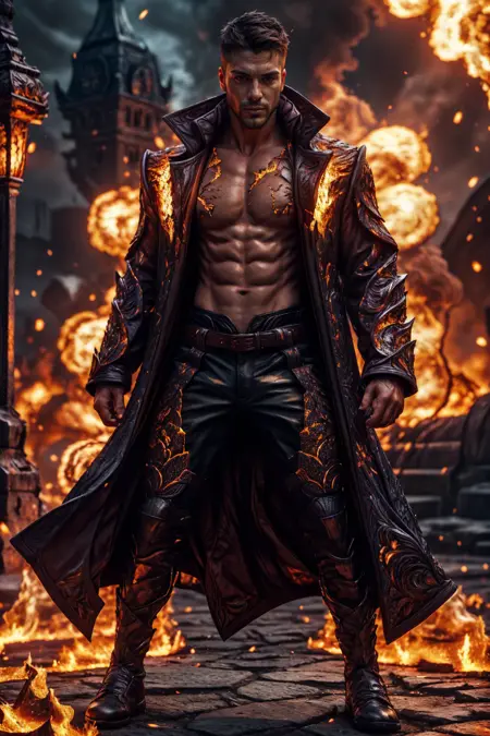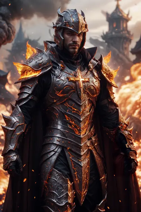 이것은 원래 _에MBER 아머(Ember Armor)_라고 불렸습니다. 불꽃이 튀어나오는 약간 타는 옷과 갑옷 효과를 만들어내는 의상 LORA를 만들고 싶었기 때문이죠. 다크 소울스 3의 '에버머드 효과(embered effect)'처럼 말이죠. 하지만 왜인지 그 효과를 정확히 구현하기가 너무 어려웠고, 제가 이 정도까지나마 그 효과를 재현할 수 있었습니다. 그러나 여전히 '에버머(embers)'보다는 '지옥적(infernal)'에 더 가깝습니다. 그래서 새로운 이름을 붙였습니다..