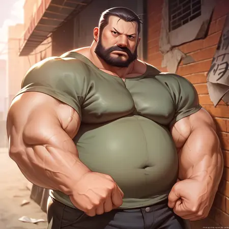 推荐提示:短发、黑发、黑眼睛、面部胡须、胡须、绿色短袖衬衫、黑色长裤、肌肉腹