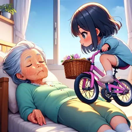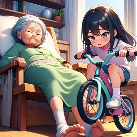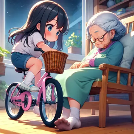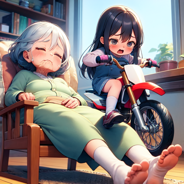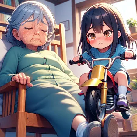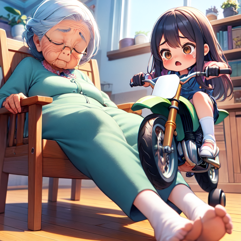 | トレーニングワード | ((kids bicycle)), riding bicycle, bicycle basket, female child, floating hair, old grandmother, old woman, wrinkled skin, grey hair, white socks, socks, sitting on chair, bookshelf, window, floor, plant, on person, closed eyes, sleeping, tears,コピーしました! ((motorcycle)), riding motorcycle, motor vehicle, female child, floating hair, old grandmother, old woman, wrinkled skin, grey hair, white socks, socks, sitting on chair, bookshelf, window, floor, plant, on person, closed eyes, sleeping, tears,コピーしました! night sky, night, dark,コピーしました! profile, from side,コピーしました! |