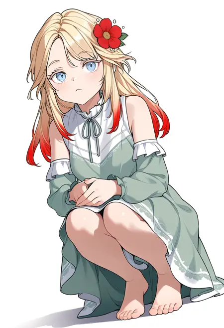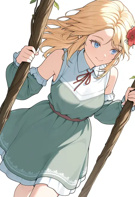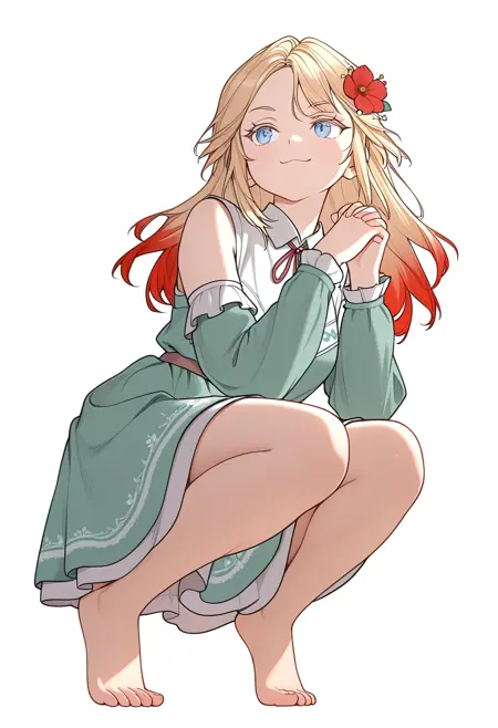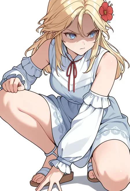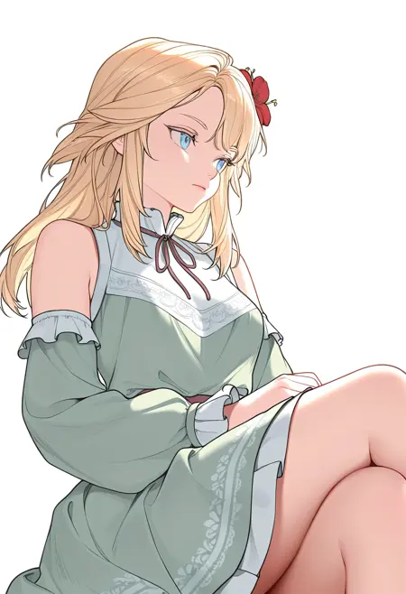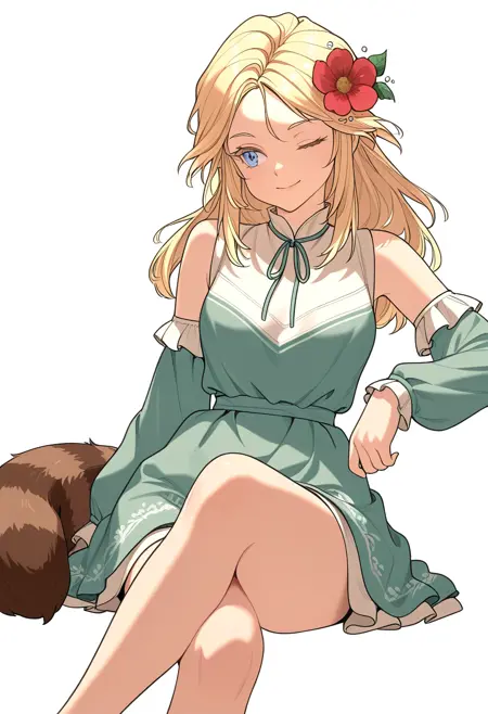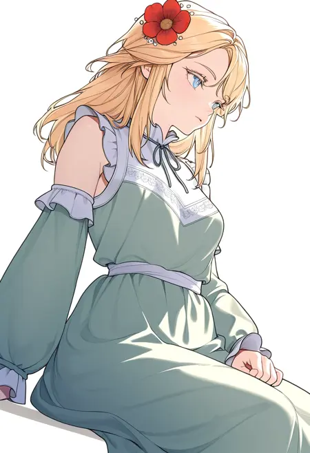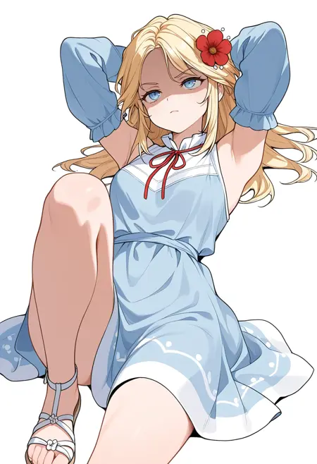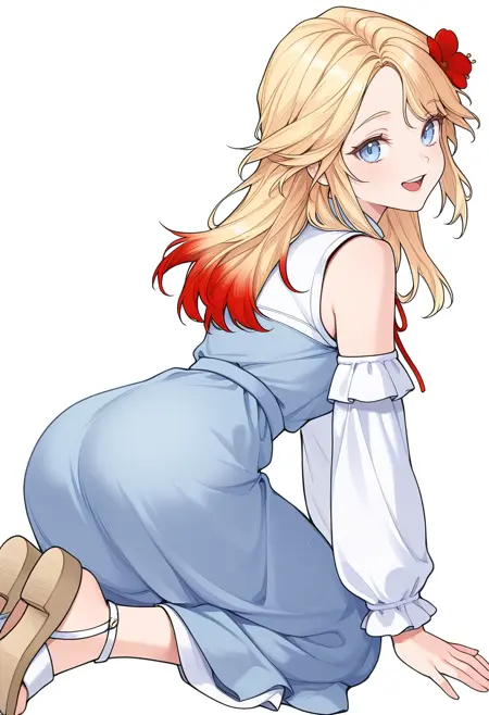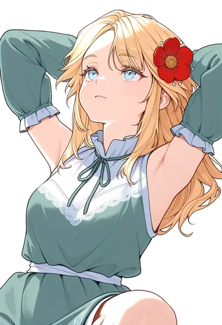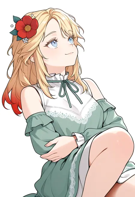 amelia/cnn, 1girl, long hair,hair flower,red flower,blonde hair,blue eyes,