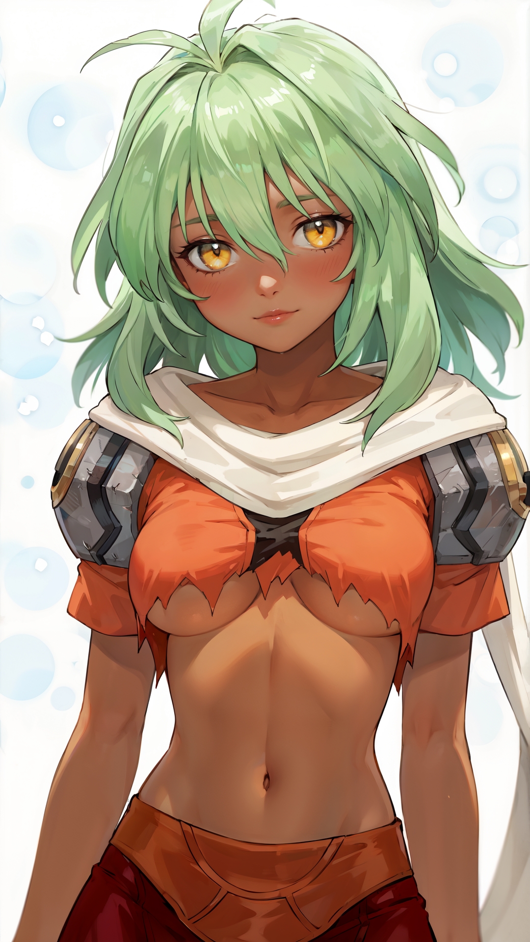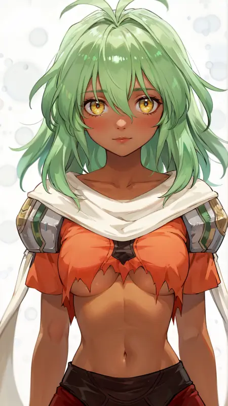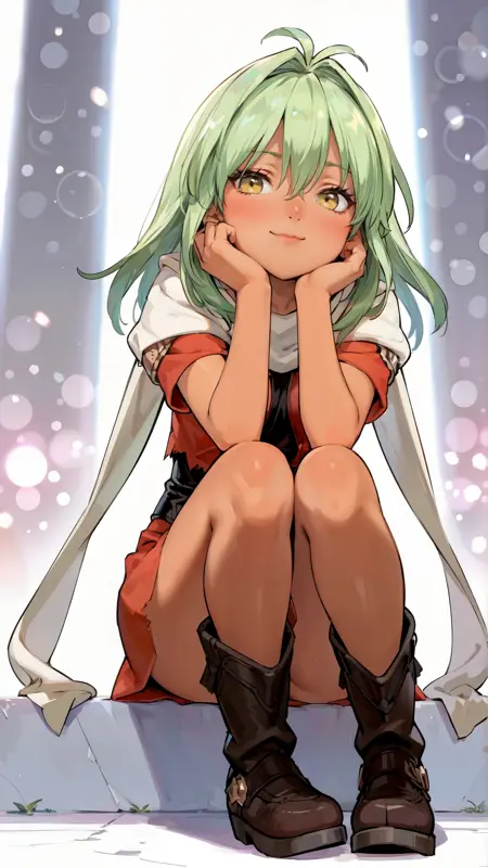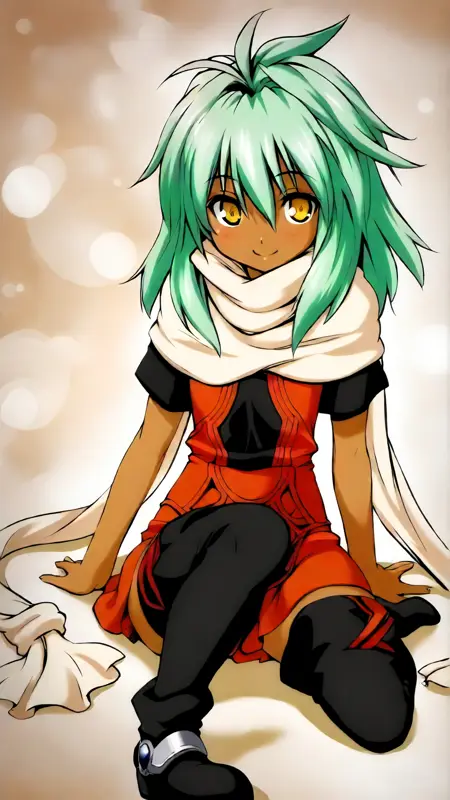 예시 프롬프트: "emerada_xenogears, 애니메이션 소녀, 1girl, 싱글, 긴 머리, 미소, 치마, 간단한 배경, 히프하이즈, 흰 배경, 앉아 있는 자세, 노란 눈, 부츠, 녹색 머리, 검은 피부, 스카프, 검은 피부의 여성, 찢어진 옷"